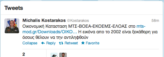 Επανέρχεται ο Α/ΓΕΕΘΑ Μιχαήλ Κωσταράκος ,μέσω twitter και δίνει συνέχεια στο μήνυμα-στήριξης προς τον αναπληρωτή υπουργό Οικονομικών Χρήστο Σταϊκούρα.