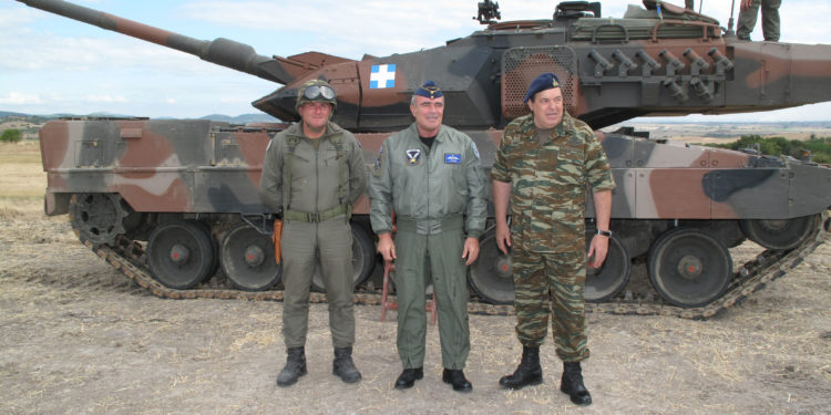 Οι δύο αρχηγοί ενημερώθηκαν για επιχειρησιακά θέματα. Ο δε Α/ΓΕΕΘΑ άφησε για λίγο τα F-16 και ανέβηκε σε άρμα μάχης.