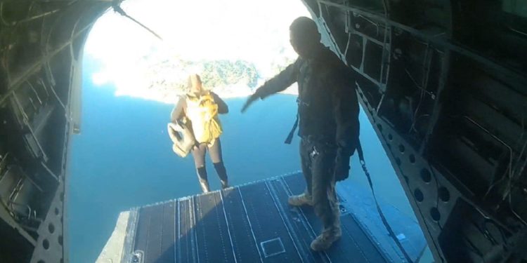 Ο Α/ΓΕΕΘΑ Ναύαρχος Βαγγέλης Αποστολάκης στο κενό. Το άλμα του με αλεξίπτωτο από ελικόπτερο CHINOOK στην περιοχή της Πάχης ,το κατέγραψε με ενσωματωμένο στο κράνος κάμερα.