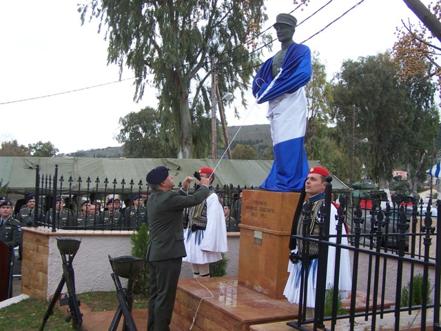 Στην συνέχεια πραγματοποίησε τα αποκαλυπτήρια (άλλου) ανδριάντα του Στρατηγού Νικολάου Πλαστήρα στο Στρατόπεδο “Λοχαγού (ΠΖ) Γ. ΓΚΙΑΛΑ”.