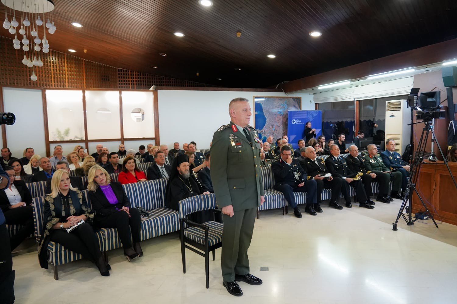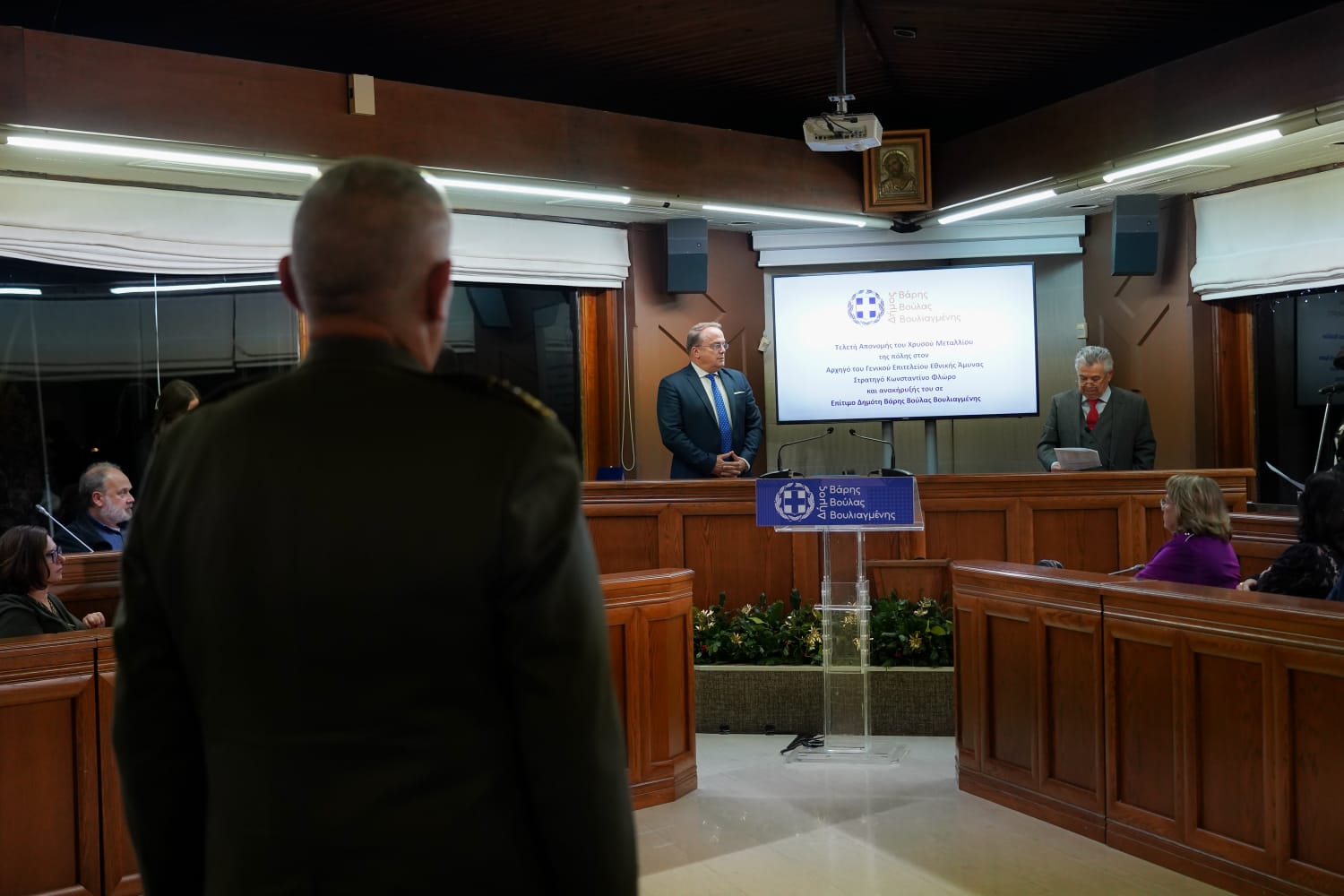 Κατά τον χαιρετισμό του ο Αρχηγός ΓΕΕΘΑ αναφέρθηκε στην εξέχουσα τιμή της ανακήρυξής του ως Επίτιμου Δημότη του Δήμου Βάρης – Βούλας – Βουλιαγμένης και της απονομής του Χρυσού Μεταλλίου της Πόλης, επισημαίνοντας ότι αυτή αφιερώνεται πρωτίστως και κυρίως στο προσωπικό των ΕΔ, το οποίο με αυταπάρνηση και επαγγελματισμό προασπίζει τα συμφέροντα της Πατρίδος μας.