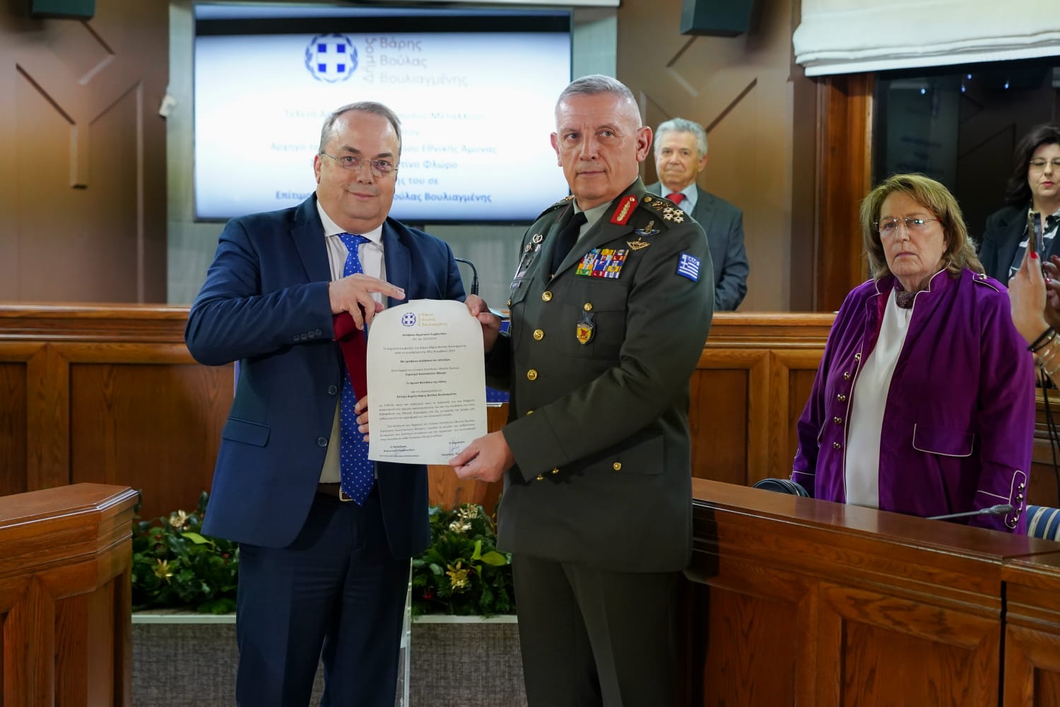 Η εν λόγω τιμητική εκδήλωση πραγματοποιήθηκε με απόφαση του Δημοτικού Συμβουλίου του Δήμου Βάρης – Βούλας – Βουλιαγμένης και κατόπιν εισήγησης του Δημάρχου κ. Γρηγόρη Κωνσταντέλλου, ως ένδειξη τιμής και σεβασμού προς τον Αρχηγό ΓΕΕΘΑ και ως ελάχιστη αναγνώριση της συμβολής του στην διασφάλιση της εθνικής κυριαρχίας και της ευημερίας της Χώρας μας, καθώς και για την προσφορά στο κοινωνικό σύνολο χάρις στην διαρκή ετοιμότητα που επιδεικνύουν οι Ένοπλες Δυνάμεις (ΕΔ) στην αντιμετώπιση κρίσεων και καταστροφών, ως συνέπεια της κλιματικής κρίσης.