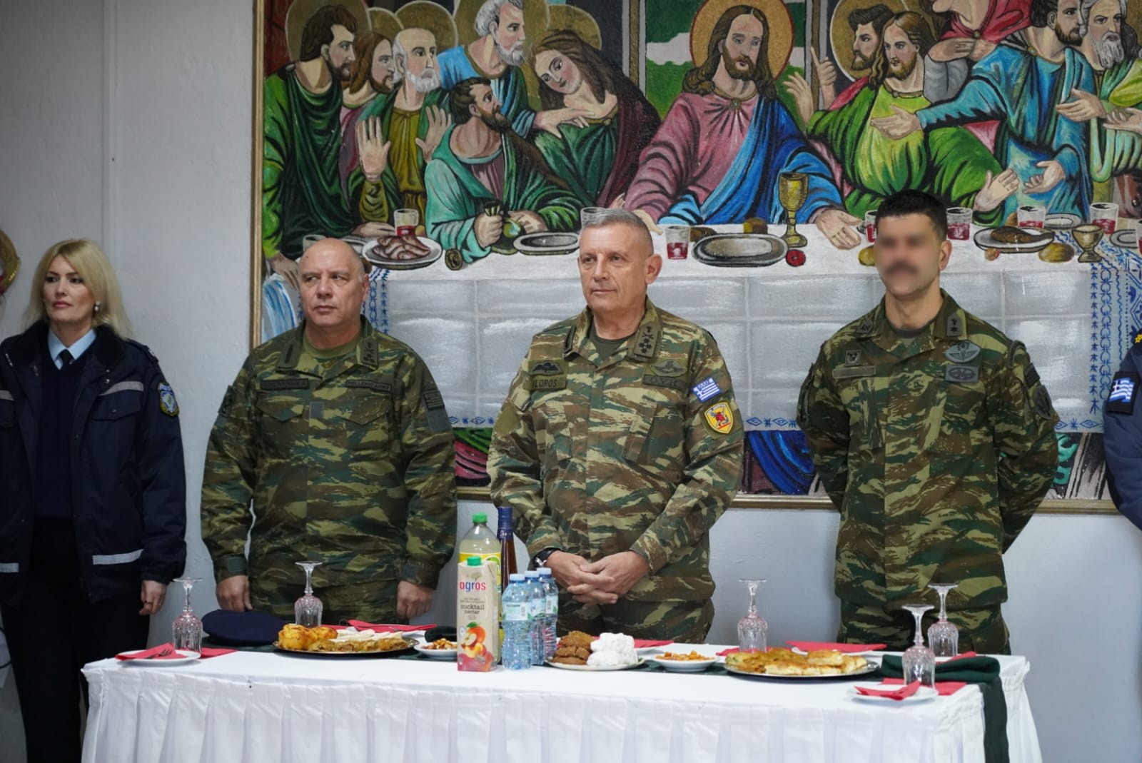 Ο Αρχηγός ΓΕΕΘΑ, συνοδευόμενος από τον Διοικητή του Δ΄ Σώματος Στρατού Αντιστράτηγο Δημόκριτο Κωνσταντάκο, και τον Διοικητή του Γ΄ ΣΣ/NRDC-GR Αντιστράτηγο Πάρι Καπραβέλο, αντάλλαξε ευχές: