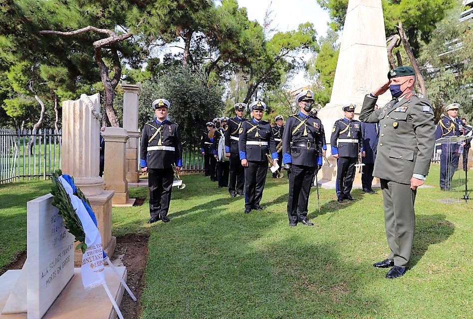 Ο αρχηγός του Γενικού Επιτελείου Εθνικής Άμυνας (ΓΕΕΘΑ) στρατηγός Κωνσταντίνος Φλώρος κατέθεσε, χθες, Πέμπτη 11 Νοεμβρίου, στεφάνι στο Μνημείο Πεσόντων του Συμμαχικού Νεκροταφείου στον Άλιμο.