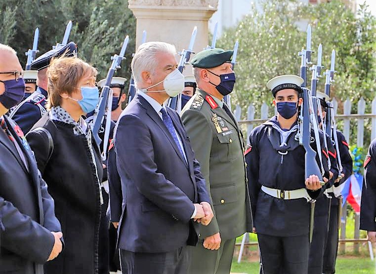 Όπως ανακοινώθηκε, ο αρχηγός ΓΕΕΘΑ παραβρέθηκε σε τελετή που πραγματοποιήθηκε στο γαλλικό τμήμα του νεκροταφείου μετά από πρόσκληση του πρέσβη της Γαλλίας στην Ελλάδα, Patrick Maisonnave.