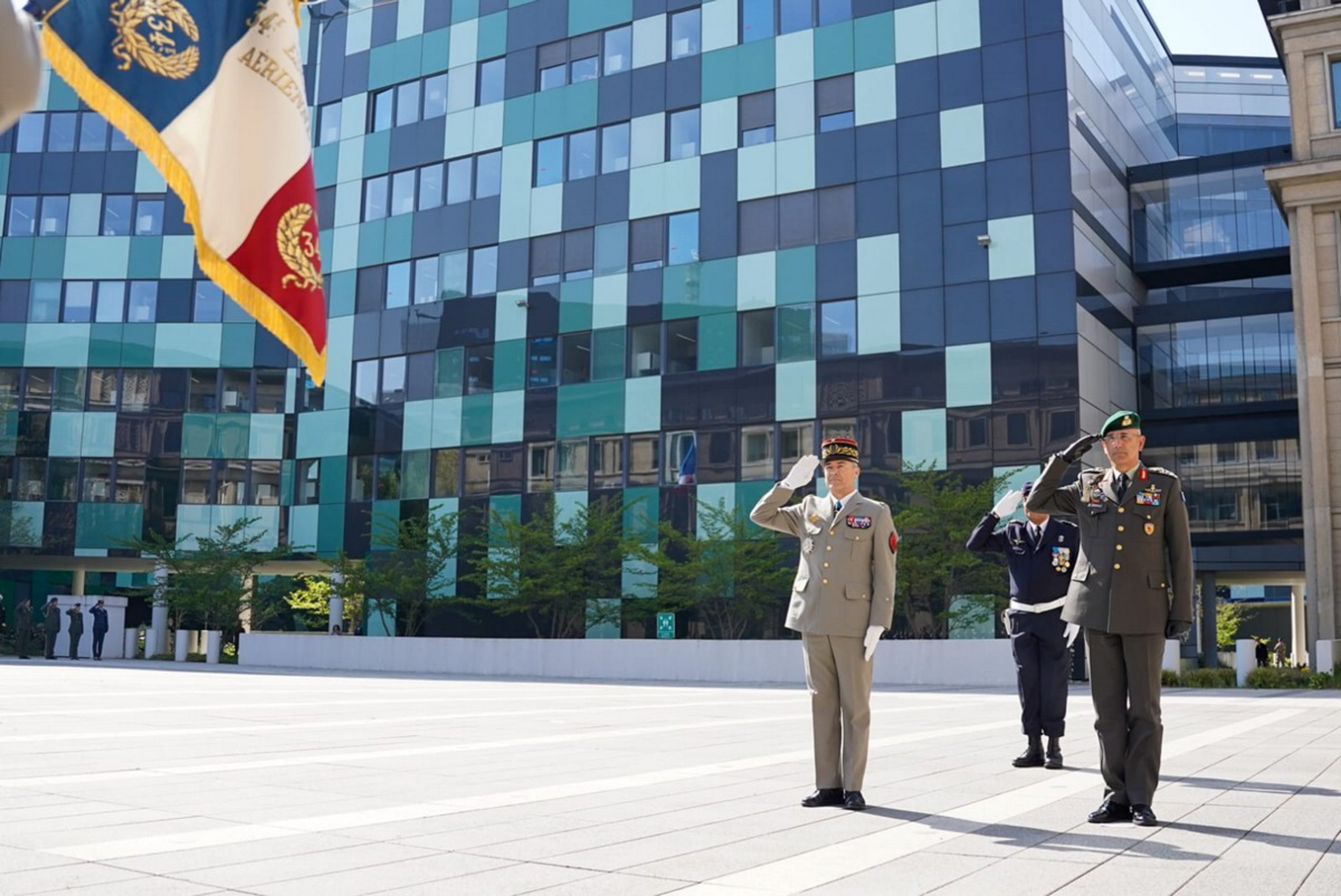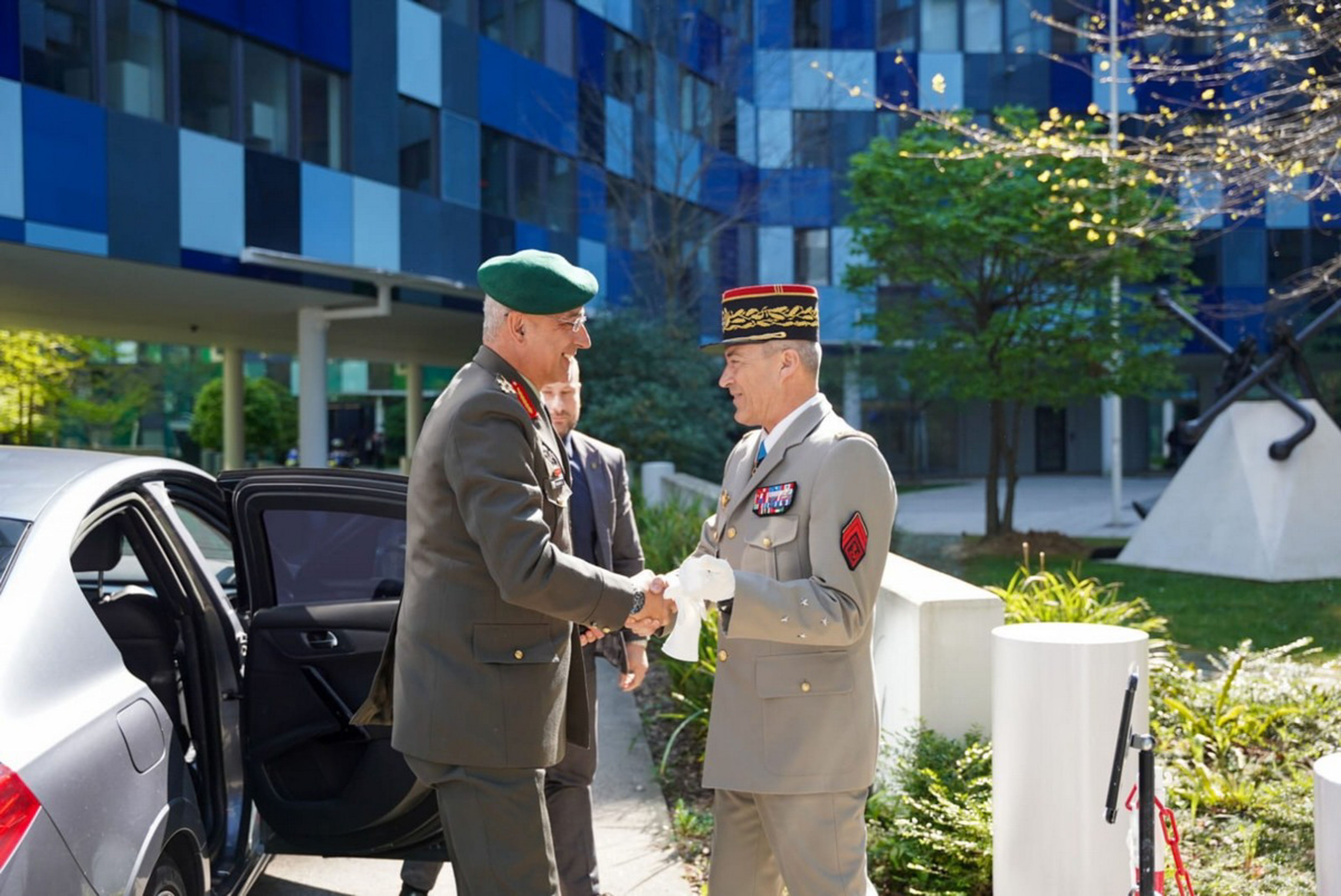 Η επίσημη υποδοχή του αρχηγού ΓΕΕΘΑ έλαβε χώρα στο Αρχηγείο των Ενόπλων Δυνάμεων της Γαλλίας από τον ομόλογό του.