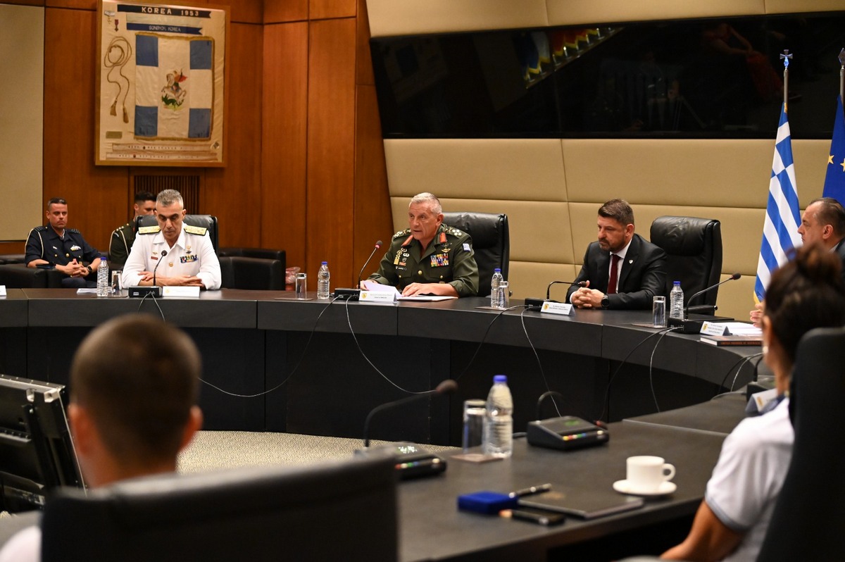 Στο πλαίσιο της ενημέρωσης της αντιπροσωπείας, ο Διευθυντής του Κλάδου Στρατηγικής – Πολιτικής – Αμυντικού Σχεδιασμού και Δυνατοτήτων του ΓΕΕΘΑ Υποπτέραρχος (ΕΑ) Απόστολος Μητσόπουλος παρουσίασε θέματα αμυντικής πολιτικής καθώς και τρεχουσών γεωπολιτικών εξελίξεων.