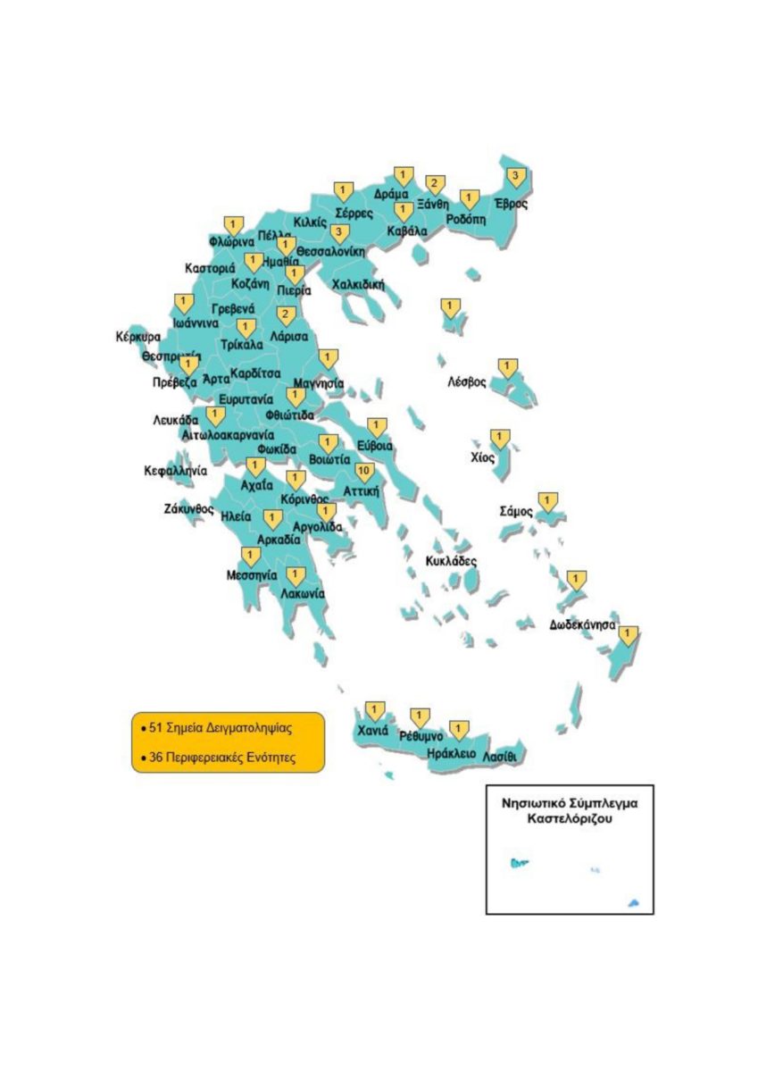 Ανακοινώνεται από το ΓΕΕΘΑ ότι από την Δευτέρα 17 Ιανουαρίου 2022 και στο πλαίσιο της συνολικής προσπάθειας για την αντιμετώπιση της πανδημίας του COVID-19, οι Ένοπλες Δυνάμεις συνεχίζουν να συμβάλλουν (πατήστε εδώ) στην επιδημιολογική επιτήρηση του πληθυσμού, με την ανάπτυξη 51 στεγασμένων και κατάλληλων σταθμών δειγματοληψίας για την διενέργεια ταχέως διαγνωστικού ελέγχου (rapid test) σε 36 Περιφερειακές Ενότητες της Χώρας, διατηρώντας ετοιμότητα ανάπτυξης 53 επιπλέον, εφόσον απαιτηθεί.