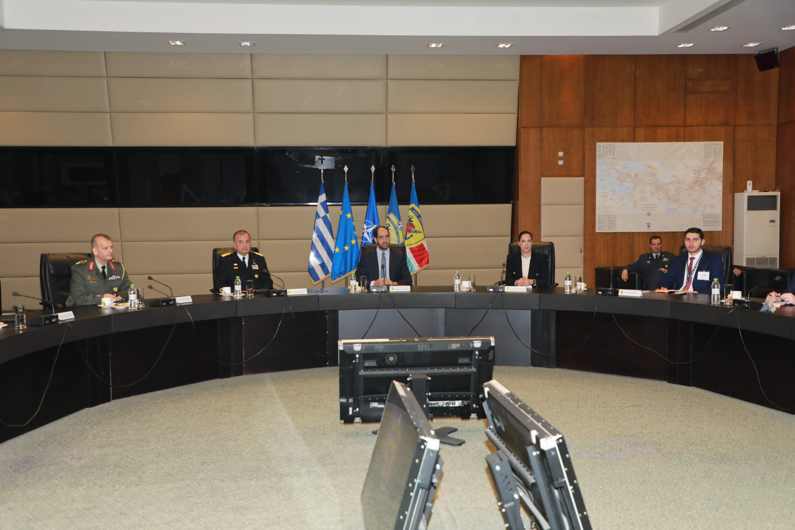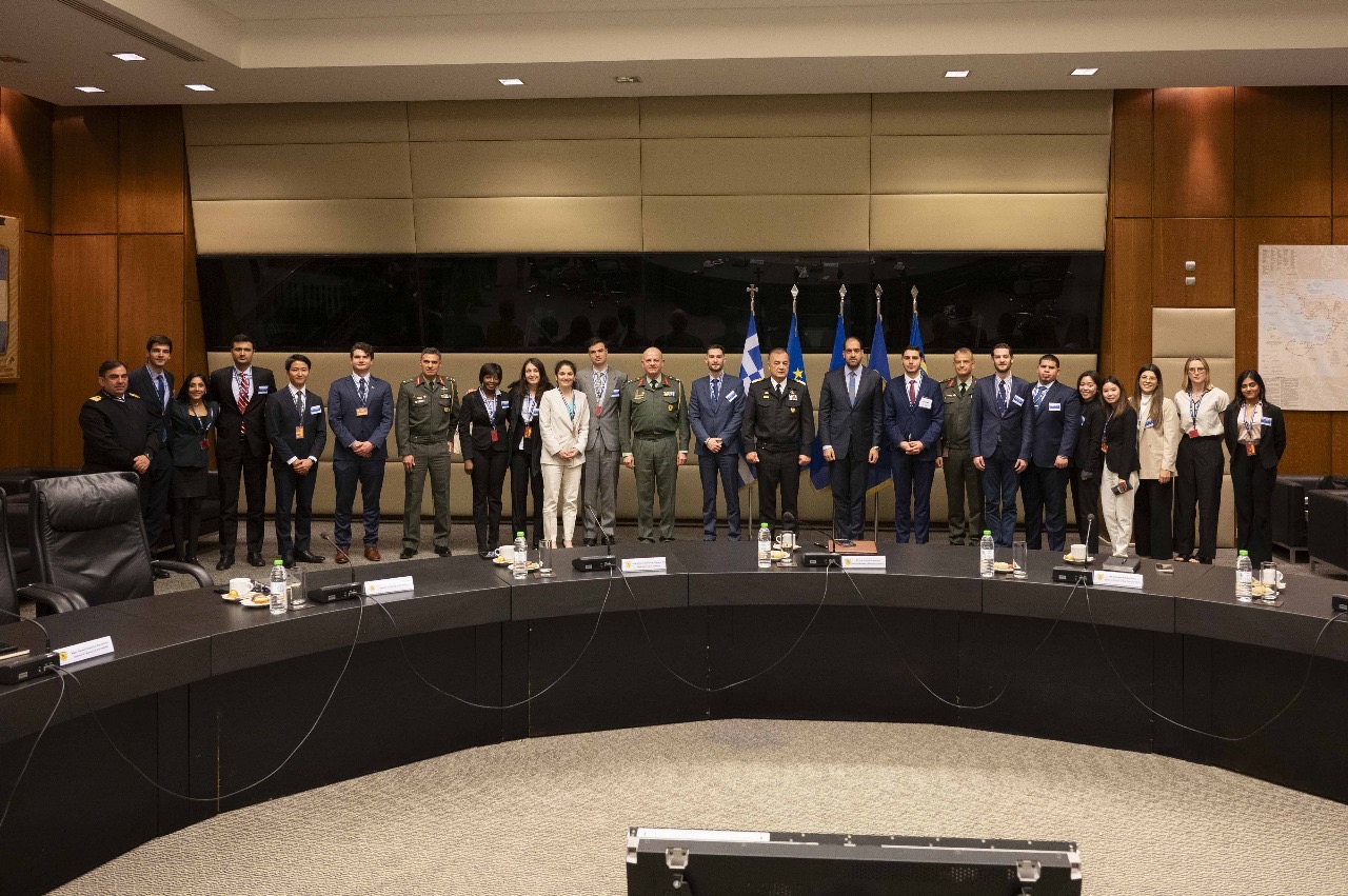 Οι σπουδαστές, παρουσία του Υπουργού Εθνικής Άμυνας κ. Νίκου Δένδια, του Υφυπουργού Εθνικής Άμυνας κ. Ιωάννη Κεφαλογιάννη και του Υπαρχηγού ΓΕΕΘΑ Αντιναυάρχου Χρήστου Σασιάκου ΠΝ (ως εκπροσώπου του Αρχηγού ΓΕΕΘΑ Στρατηγού Δημήτριου Χούπη), παρακολούθησαν ενημέρωση από επιτελείς του ΓΕΕΘΑ επί θεμάτων εθνικής αμυντικής πολιτικής.