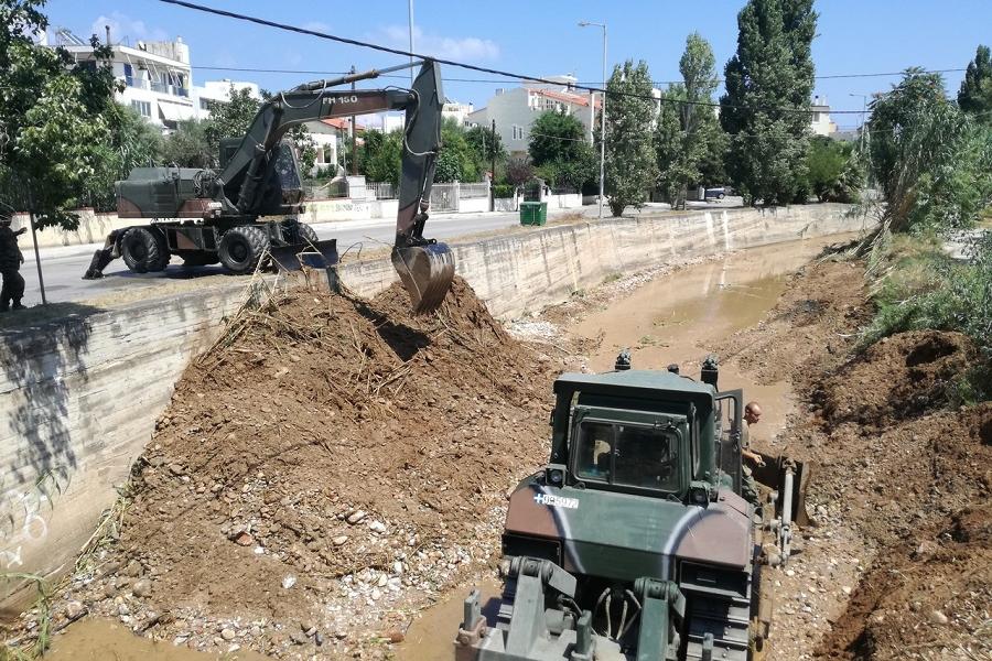 - Η Μονάδα Μελετών και Κατασκευών (ΜΟΜΚΑ) ΓΕΕΘΑ προέβη σε εργασίες αντιπλημμυρικής προστασίας σε περιοχές Αν. Αττικής (διευθέτηση οδού πρόσβασης στο ρέμα Πετρέτζα, καθαρισμός ρέματος Ραφήνας, αποκατάσταση οδού 300 μέτρων πλησίον ΚΑΑΥ Αγ. Ανδρέα, αναγνώριση προσβάσεων σε 3 ρέματα στο Ν. Βουτζά).