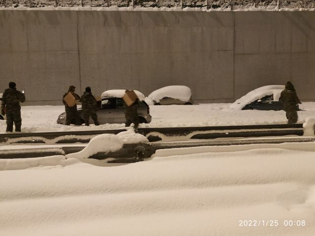 – Έξοδος Κηφισίας (11): Οκτώ οχήματα με 34 άτομα και δύο μηχανήματα (1 φορτωτής γαιών, 1 ισοπεδωτής γαιών), με έργο τον απεγκλωβισμό οχημάτων και τον εκχιονισμό Αττικής Οδού. Έχει αποδεσμευθεί ένα όχημα με 4 άτομα.