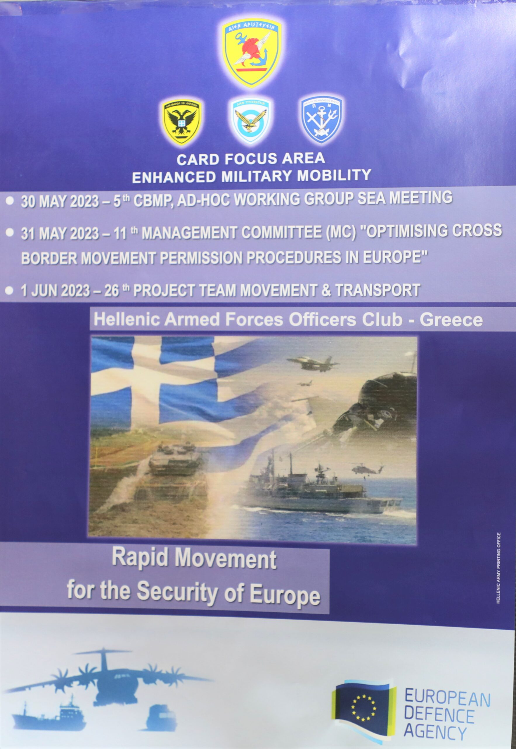 Σύσκεψη εμπειρογνωμόνων με θέμα τη στρατιωτική κινητικότητα του ευρωπαϊκού Οργανισμού ‘Αμυνας («Military Mobility of the European Defence Agency) πραγματοποιήθηκε για πρώτη φορά στην Ελλάδα στην Λέσχη Αξιωματικών Ενόπλων Δυνάμεων (ΛΑΕΔ). Τη σύσκεψη διοργάνωσε η διεύθυνση Υποστήριξης Διοικητικής Μέριμνας του ΓΕΕΘΑ (ΓΕΕΘΑ/Γ1) και τελούσε υπό την αιγίδα της Ευρωπαϊκής Ένωσης.