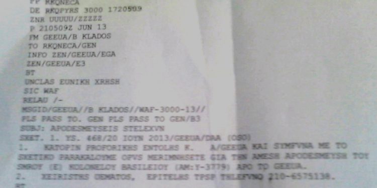 Οι μεταθέσεις και οι τοποθετήσεις στελεχών κάποιες φορές δεν χρειάζονται διαδικασίες και αποφάσεις ενεργές ή μη “θαμμένες” όπως αυτή του Ραγκούση. Σε κάποιες περιπτώσεις όπως προκύπτει από τα έγγραφα που παρουσιάζουμε αρκεί η προφορική εντολή ενός Αρχηγού . Στην συγκεκριμένη περίπτωση του Α/ΓΕΕΘΑ.