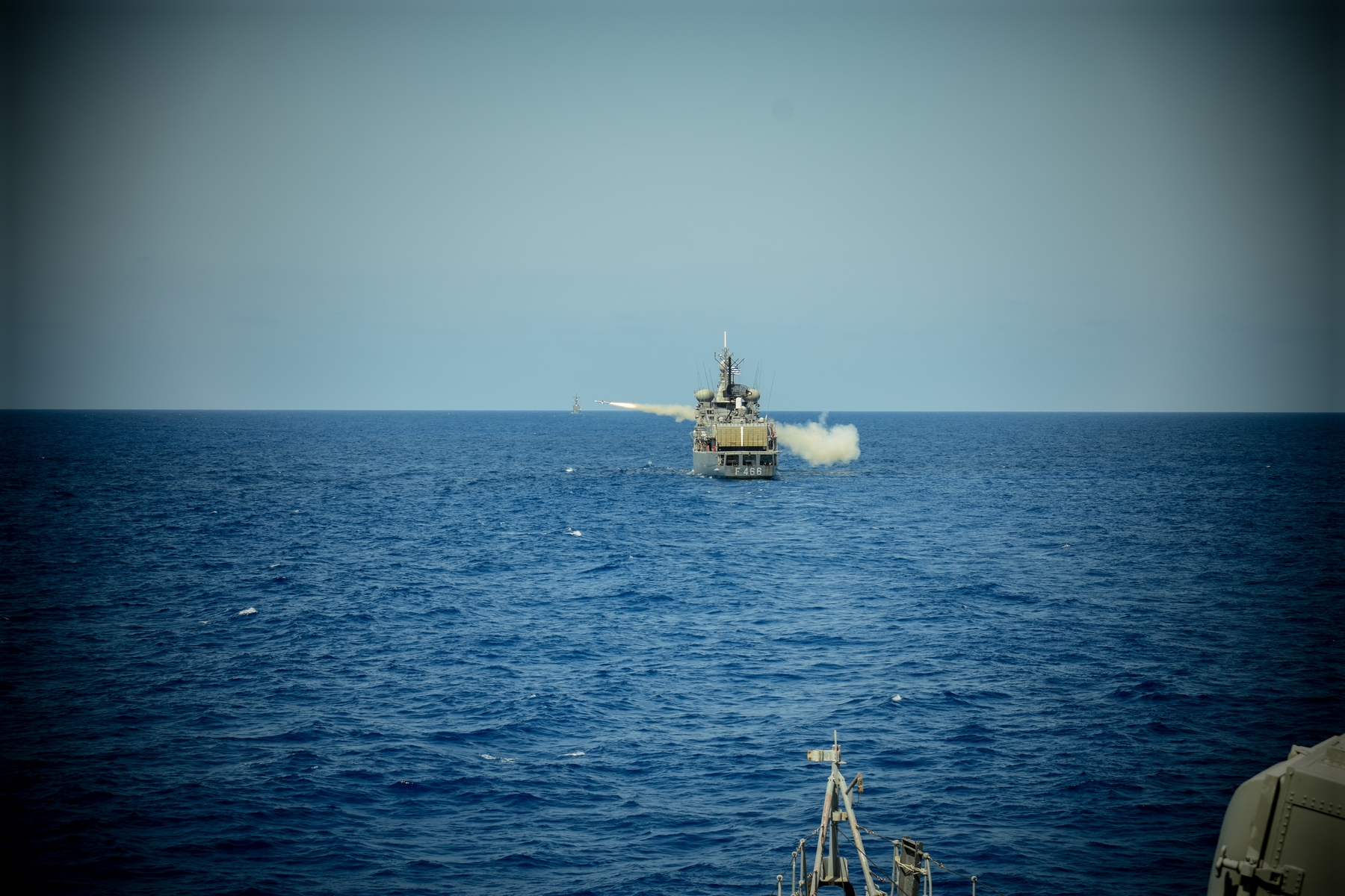 Στα εντυπωσιακά στιγμιότυπα της άσκησης περιλαμβάνεται και η επιτυχής βολή Κατευθυνόμενου Βλήματος Επιφανείας – Αέρος, Sea Sparrow, από την Φρεγάτα «Νικηφόρος Φωκάς» του Πολεμικού μας Ναυτικού. Ήταν μάλιστα η πρώτη βολή Κ/Β ESSM που πραγματοποιήθηκε μετά από σχεδόν 8 χρόνια.
