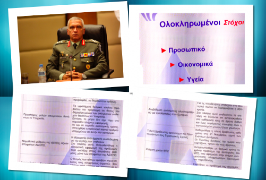 “Οι στόχοι του Α/ΓΕΕΘΑ δεν είναι προσωπικοί . Αφορούν όλες και όλους που υπηρετούν καθ΄οιονδήποτε τρόπο στις Ένοπλες Δυνάμεις. Αφορούν τον Ελληνικό Λαό, που με τις θυσίες του στηρίζει αγόγγυστα τη λειτουργία των Ενόπλων Δυνάμεων,τις οποίες θέτει άλλωστε πάντοτε υψηλά στη συνείδησή του”.