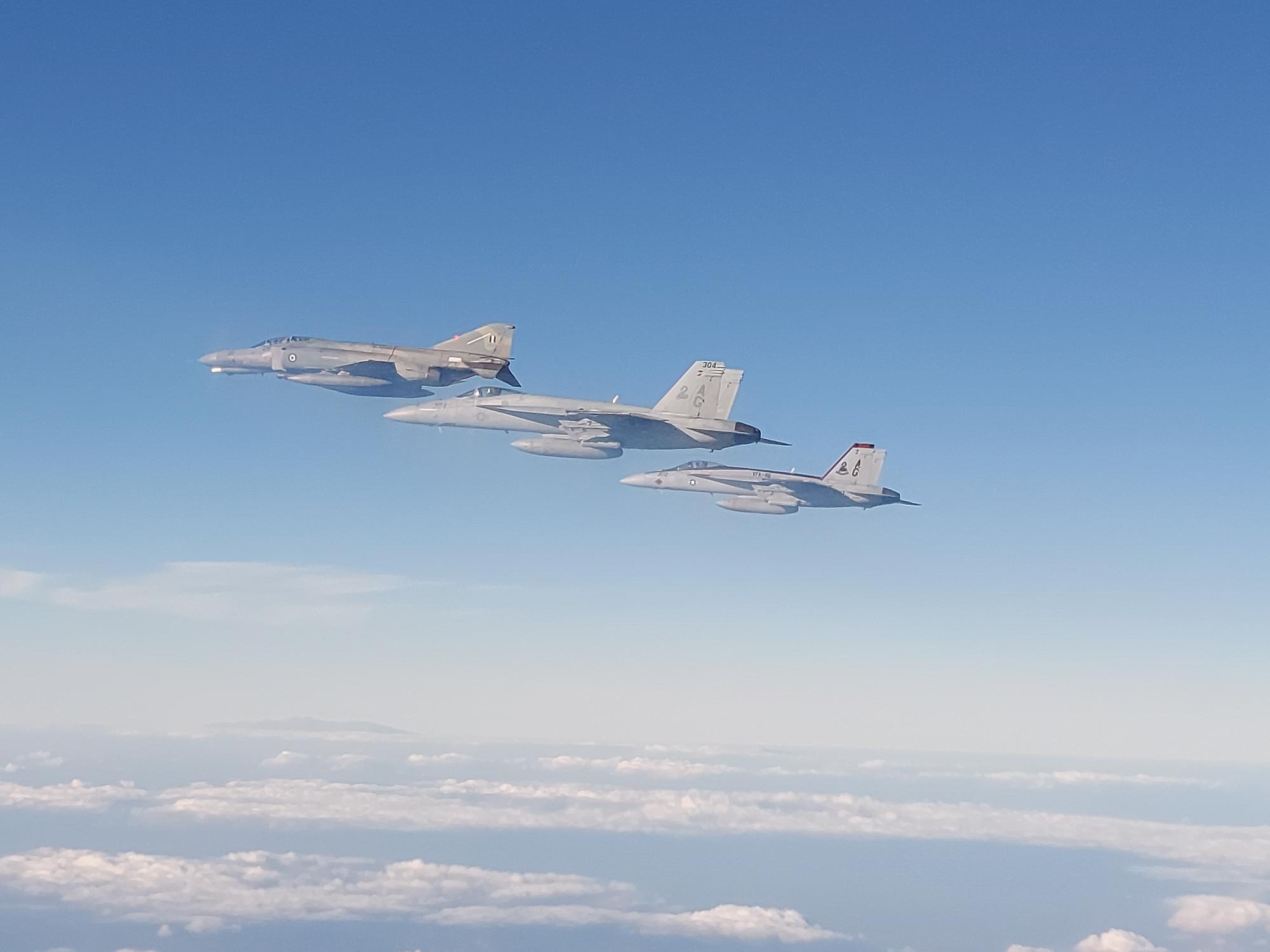 - Δύο Α/Φ F-16 της ΠΑ σε αντικείμενα εκπαίδευσης εναέριας μάχης μεταξύ διαφορετικών τύπων αεροσκαφών (Dissimilar Air Combat Training – DACT) σε συνεργασία με 2 Α/Φ F-18 του USS GHWB στην περιοχή δυτικά Πελοποννήσου.