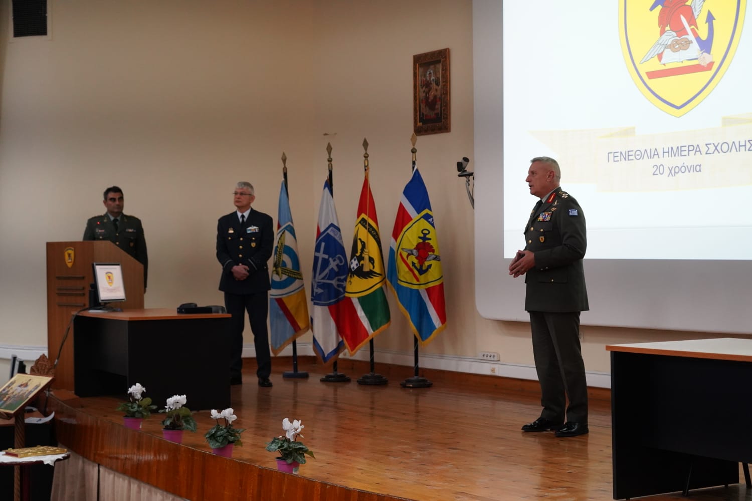 Κατά τον χαιρετισμό του, ο Αρχηγός ΓΕΕΘΑ αναφέρθηκε στην υψηλού επιπέδου ολιστική εκπαίδευση που παρέχεται από την Σχολή, συνδυάζοντας την κατάρτιση επί των στρατιωτικών θεμάτων με την ακαδημαϊκή γνώση και την εξοικείωση με τις πλέον πρόσφατες εξελίξεις στον τομέα της άμυνας.