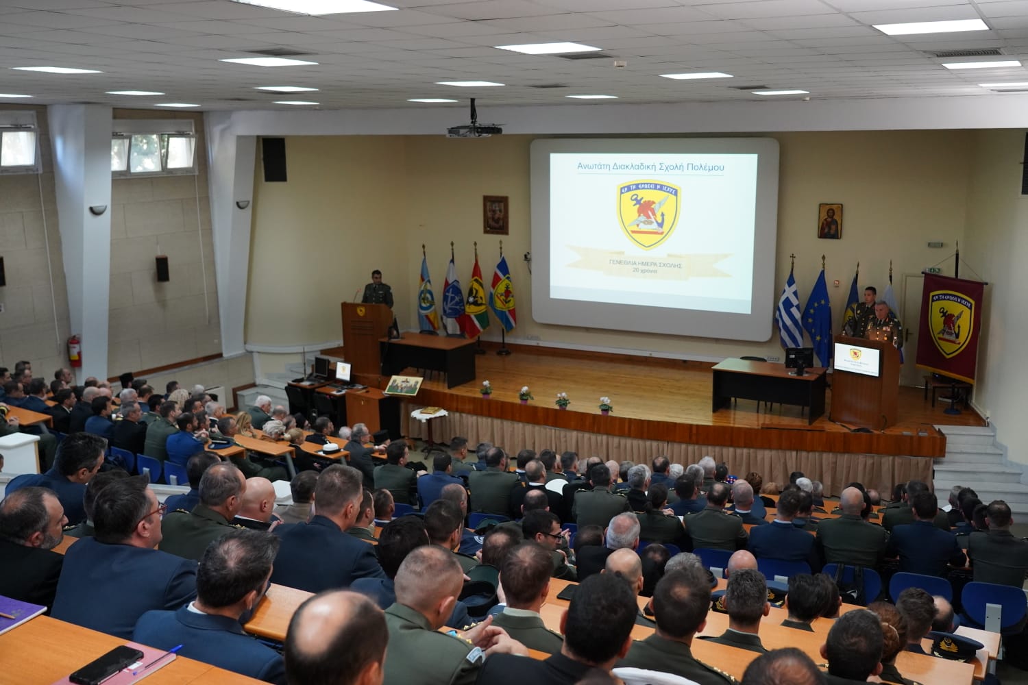 Τέλος, απευθυνόμενος στους σπουδαστές, τους παρότρυνε να αναδείξουν τις διοικητικές και επιτελικές δεξιότητες που έχουν αποκτήσει κατά την πολυετή υπηρεσία τους στις Ένοπλες Δυνάμεις, προάγοντας την αριστεία και λειτουργώντας παράλληλα ως πολλαπλασιαστής ισχύος στο σύγχρονο διακλαδικό πεδίο μάχης.