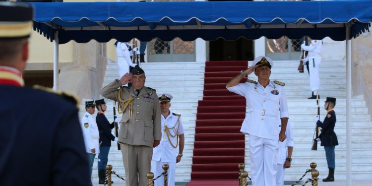 O Αρχηγός ΓΕΕΘΑ, Ναύαρχος Ευάγγελος Αποστολάκης ΠΝ, υποδέχθηκε σε επίσημη τελετή στο Στρατόπεδο “ΠΑΠΑΓΟΥ” τον Αρχηγό του Γενικού Επιτελείου των Ενόπλων Δυνάμεων του Ηνωμένου Βασιλείου, Air Chief Marshal Sir Stuart Peach GBE KCB ADC DL, στο πλαίσιο επίσκεψης που πραγματοποίησε στην Ελλάδα.
