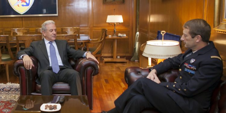 Ο Υπουργός Εθνικής Άμυνας Δημήτρης Αβραμόπουλος συναντήθηκε στο γραφείο του στο Υπουργείο Εθνικής Άμυνας, με τον Πρόεδρο της Στρατιωτικής Επιτροπής της Ευρωπαϊκής Ένωσης (European Union Military Committee-EUMC) Πτέραρχο Patrick de Rousiers, ο οποίος πραγματοποιεί επίσκεψη στη χώρα μας, προσκεκλημένος του Αρχηγού ΓΕΕΘΑ.