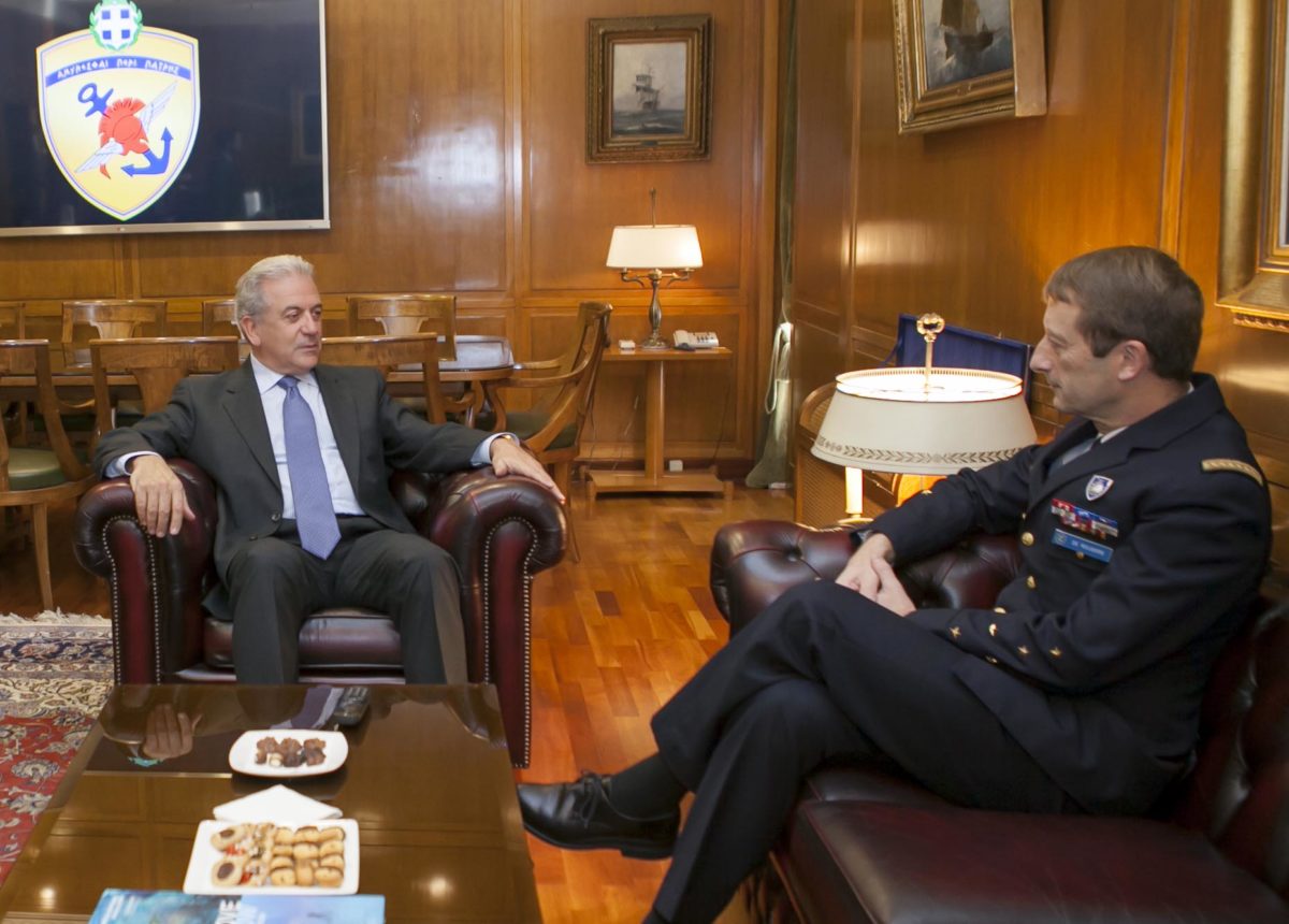 Ο Υπουργός Εθνικής Άμυνας Δημήτρης Αβραμόπουλος συναντήθηκε στο γραφείο του στο Υπουργείο Εθνικής Άμυνας, με τον Πρόεδρο της Στρατιωτικής Επιτροπής της Ευρωπαϊκής Ένωσης (European Union Military Committee-EUMC) Πτέραρχο Patrick de Rousiers, ο οποίος πραγματοποιεί επίσκεψη στη χώρα μας, προσκεκλημένος του Αρχηγού ΓΕΕΘΑ.