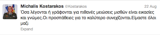 @ Kostarakos, Όσα λέγονται ή γράφονται για πιθανές μειώσεις μισθών είναι εικασίες και γνώμες. Οι προσπάθειες για το καλύτερο συνεχίζονται. Είμαστε όλοι μαζι