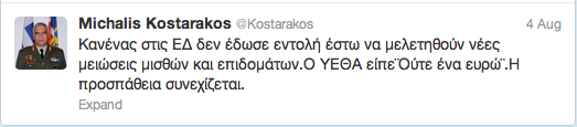 Κανένας στις ΕΔ δεν έδωσε εντολή έστω να μελετηθούν νέες μειώσεις μισθών και επιδομάτων. Ο ΥΕΘΑ είπε Ούτε ένα ευρώ. Η προσπάθεια συνεχίζεται.