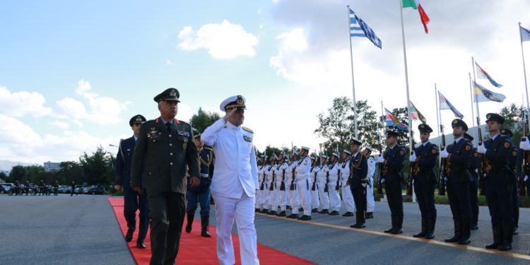 O Αρχηγός ΓΕΕΘΑ Στρατηγός Μιχαήλ Κωσταράκος υποδέχτηκε στο Επιτελείο τον Αρχηγό των Ενόπλων Δυνάμεων της Ιταλίας Ναύαρχο Luigi Binelli Mantelli, ο οποίος πραγματοποιεί επίσημη επίσκεψη στη χώρα μας μετά από πρόσκληση του Έλληνα Αρχηγού.
