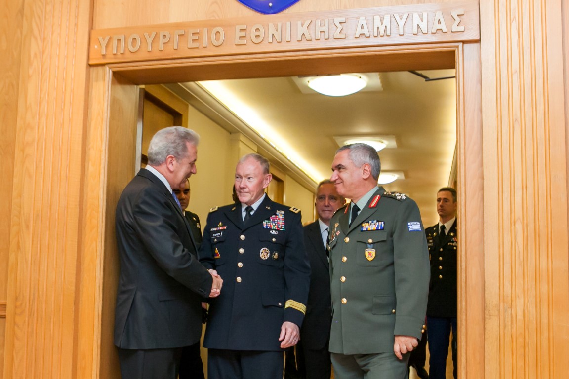 “Πολύ αστέρι” στο ΥΕΘΑ . Η άφιξη του Αρχηγού των αμερικανικών Ενόπλων Δυνάμεων στρατηγού Μάρτιν Ντέμπσεϊ έγινε με όλες τις τιμές. Οι Αρχηγοί των Γενικών Επιτελείων τον υποδέχθηκαν . Ο Ντέμπσεϊ συναντήθηκε με τον Α/ΓΕΕΘΑ αλλά και τον ΥΕΘΑ Δημήτρη Αβραμόπουλο.