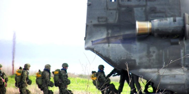 Στην άσκηση μετέχουν μεταφορικά Ε/Π του ΣΞ, μεταφορικά α/φ της ΠΑ και τμήματα ειδικών επιχειρήσεων των Κλάδων των ΕΔ.