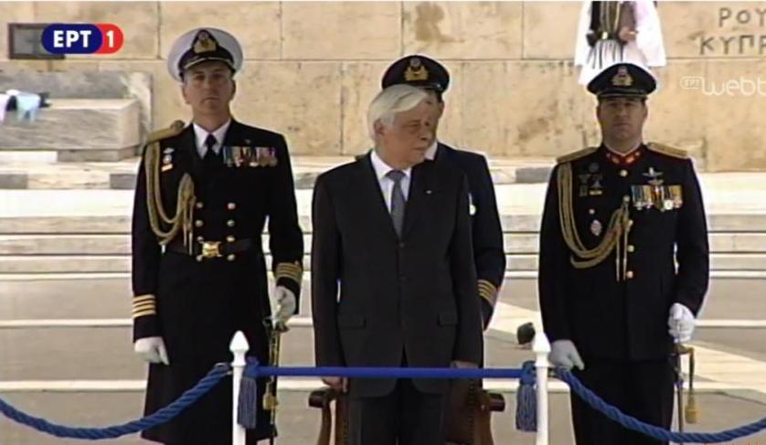 Σε εξέλιξη είναι η μεγάλη στρατιωτική παρέλαση στο Σύνταγμα, για την επέτειο της Ελληνικής Επανάστασης του 1821 και της απελευθέρωσης από τον τουρκικό «ζυγό».