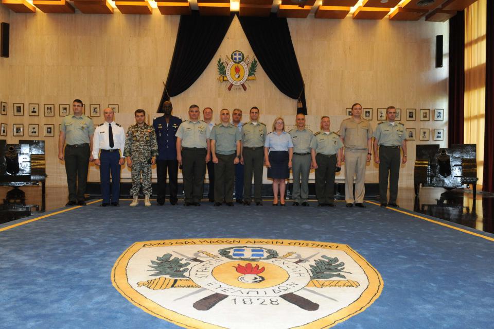Πρόκειται για τους στρατιωτικούς ακολούθους της Αλβανίας, της Αρμενίας, του Βελγίου, των ΗΠΑ, του Ιράν, της Ουγγαρίας, της Ρουμανίας, της Ρωσικής Ομοσπονδίας και της Σενεγάλης, οι οποίοι ενημερώθηκαν για τη λειτουργία, τις υποδομές και τις δραστηριότητες της Σχολής, ξεναγήθηκαν στις εγκαταστάσεις της και παρακολούθησαν επίδειξη της Διμοιρίας Επιδείξεως και επίδειξη στον Στίβο Μάχης και τον Πύργο Αναρρίχησης.