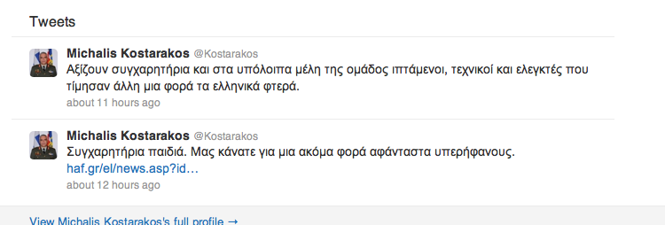 Συγχαρητήριο twitter του Α/ΓΕΕΘΑ Μιχαήλ Κωσταράκου στους τρεις Έλληνες αεροπόρους που για άλλη μια φορά διακρίθηκαν σε εκπαιδευτική δρατηριότητα του ΝΑΤΟ.