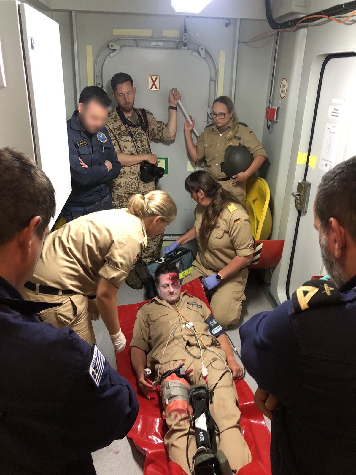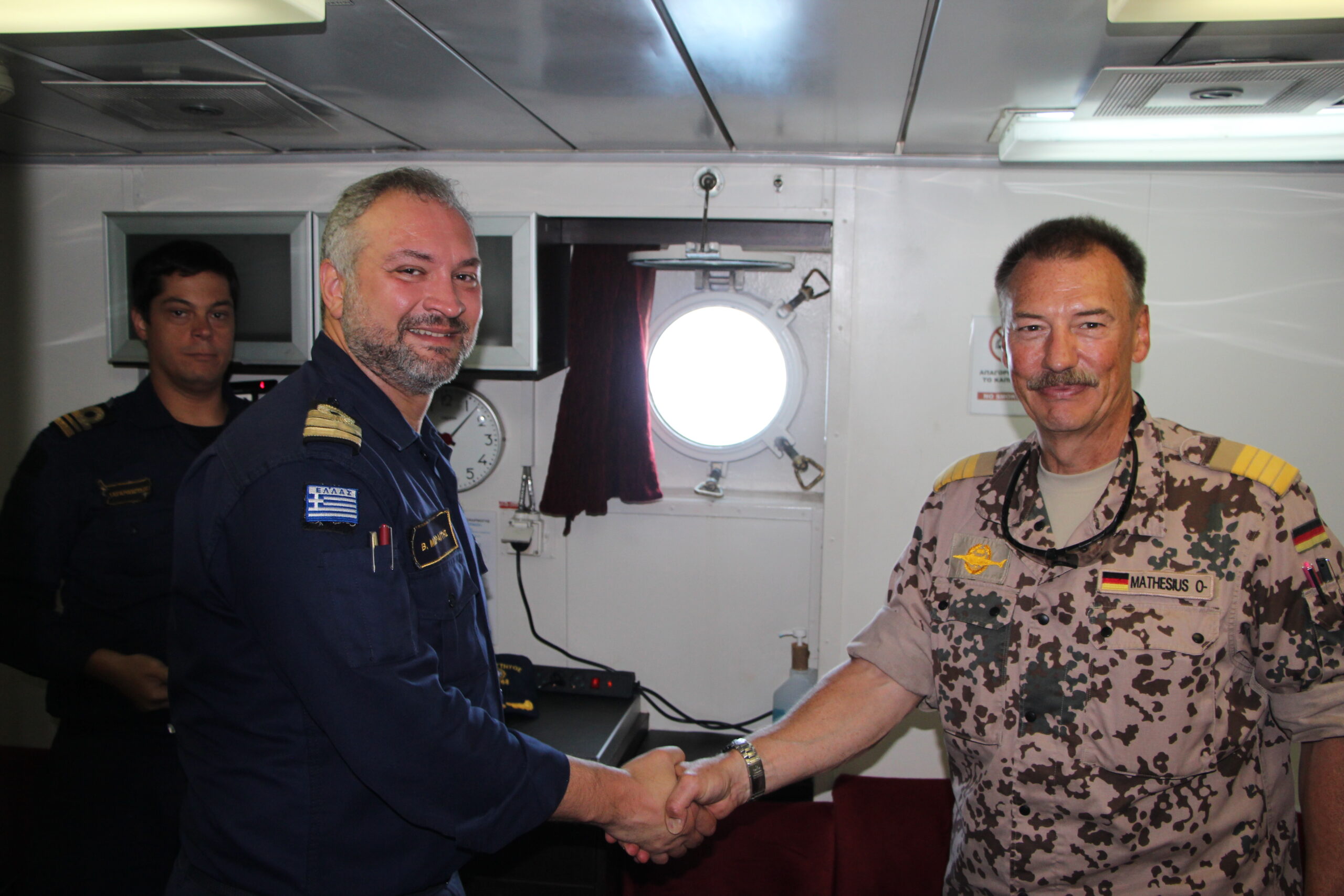 Όπως ανακοινώθηκε σήμερα από το ΓΕΕΘΑ, εκτελέστηκαν αντικείμενα προχωρητικών ελιγμών, παροχής Α’ βοηθειών, μεταφοράς τραυματία και επίδειξης εξοπλισμού κατάσβεσης πυρκαγιάς, ενώ στο πλαίσιο της δραστηριότητας ο διοικητής της SNMG 2 TASK UNIT 01, Captain Thorsten Mathesius, επέβη στην κανονιοφόρο «Αήττητος».