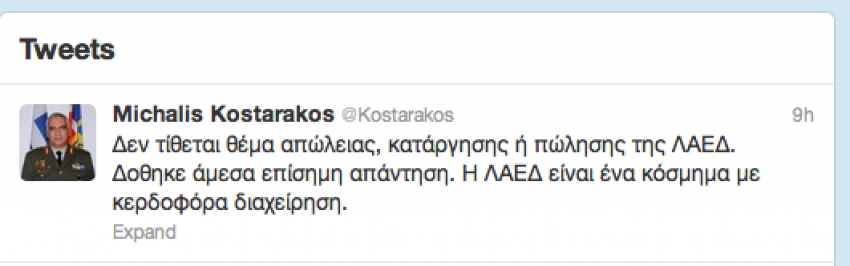 “Δεν τίθεται θέμα απώλειας” της ΛΑΕΔ ,λέει μέσω tweet ο Α/ΓΕΕΘΑ υποστηρίζοντας ότι δόθηκε άμεσα επίσημη απάντηση.
