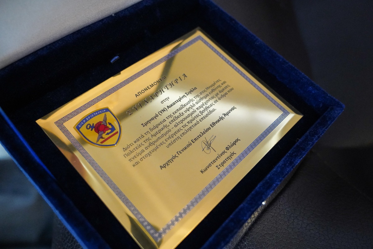 Δείτε στιγμιότυπα από την απονομή της ηθικής αμοιβής στην Σμηναγό Αικατερίνη Σιγάλα: