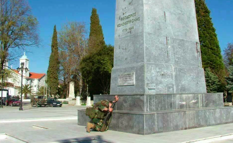Η φωτογραφία του στρατιώτη που προσκυνά το μνημείο για τον Θεόδωρο Κολοκοτρώνη “σημαδεύει” θετικά την πορεία 85 χιλιομέτρων με πλήρη φόρτο που διοργάνωσε το ΓΕΕΘΑ.
