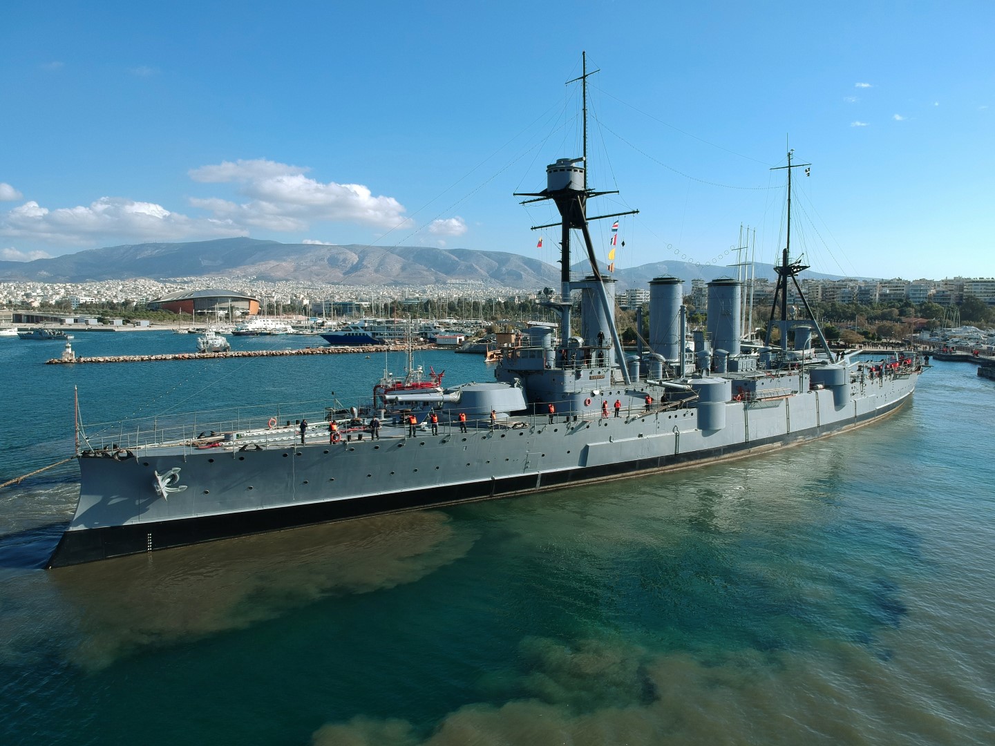 Το μακρύ ταξίδι των 270 μιλίων, από τη Θεσσαλονίκη μέχρι τη μόνιμη θέση ελλιμενισμού του στη Μαρίνα του Φλοίσβου, ξεκίνησε στις 11 το πρωί της περασμένης Τρίτης, και τον τυχερό «Μπαρμπα-Γιώργη» συνόδευαν η φρεγάτα «Ελλη» και δύο ρυμουλκά.