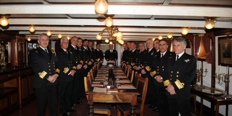 Έγινε , σύμφωνα με την παράδοση, η πρώτη συνεδρίαση του Ανωτάτου Ναυτικού Συμβουλίου (ΑΝΣ) υπό τη νέα του σύνθεση, επί του ΠΝΜ «Θ/Κ ΑΒΕΡΩΦ»,απ΄ όπου και οι φωτογραφίες.