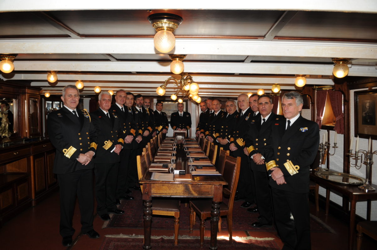 Έγινε , σύμφωνα με την παράδοση, η πρώτη συνεδρίαση του Ανωτάτου Ναυτικού Συμβουλίου (ΑΝΣ) υπό τη νέα του σύνθεση, επί του ΠΝΜ «Θ/Κ ΑΒΕΡΩΦ»,απ΄ όπου και οι φωτογραφίες.