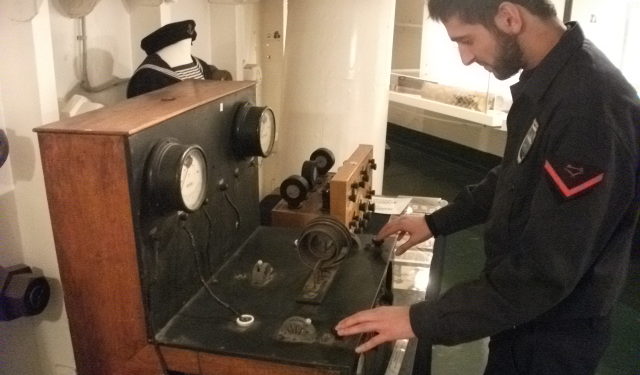 Στο πλαίσιο της ανωτέρω εκδήλωσης ξεκινά η επανεργοποίηση του χώρου ασυρμάτου του ΠΝΜ Θ/Κ Γ. ΑΒΕΡΩΦ καθώς και μίας εκ των παλαιών συσκευών του με την ευγενή συνεισφορά των μελών της Ένωσης Ελλήνων Ραδιοερασιτεχνών.