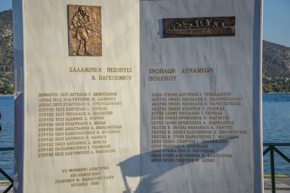 Ο Αρχηγός ΓΕΝ (Α/ΓΕΝ) Αντιναύαρχος Ιωάννης Δρυμούσης ΠΝ, εκπροσωπώντας και τον Αρχηγό ΓΕΕΘΑ Στρατηγό Κωνσταντίνο Φλώρο, την Κυριακή 09 Ιουλίου 2023, παρέστη στα Αποκαλυπτήρια του Μνημείου Σαλαμίνιων Πεσόντων Στρατού και Ναυτικού κατά τον Β΄ Παγκόσμιο Πόλεμο, στην Σαλαμίνα.