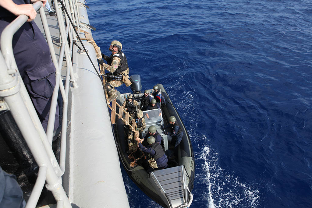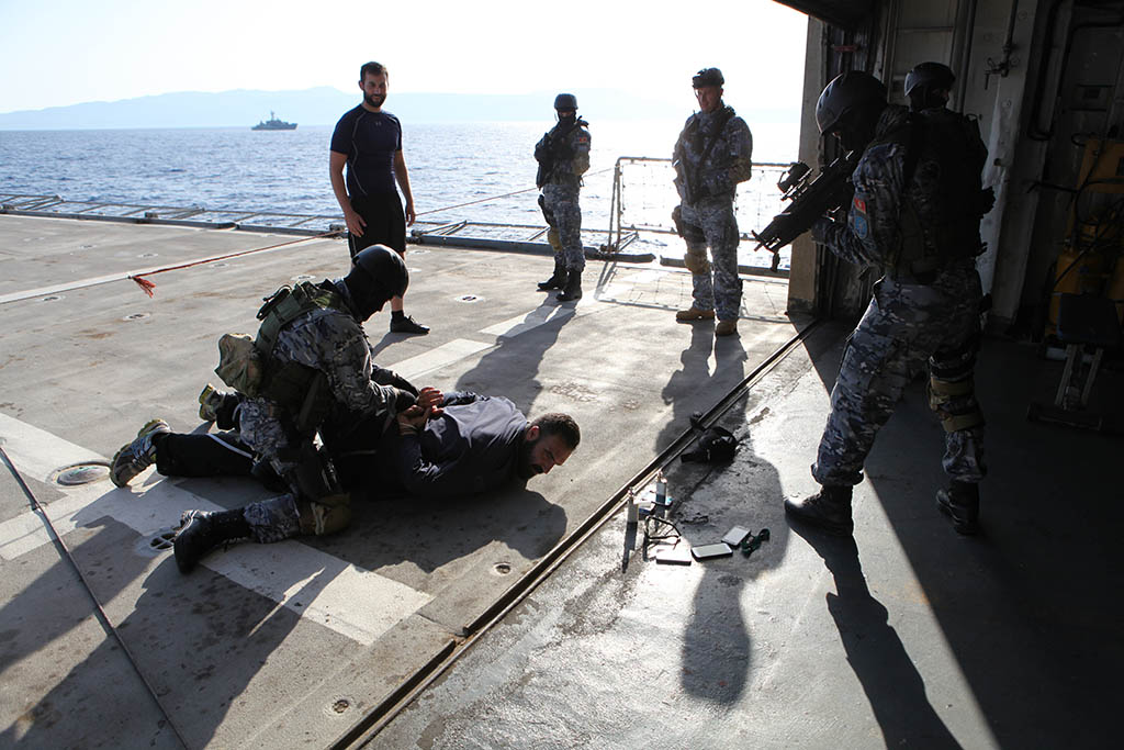 Το Πολεμικό Ναυτικό συμμετείχε με τον διοικητή της 2ης Μοίρας Φρεγατών (ΔΜΦΓ-2) σε καθήκοντα Διοικητού της ναυτικής δύναμης και επιτελείς, την φρεγάτα ΑΔΡΙΑΣ με το οργανικό ελικόπτερο της ως πλοίο έδρας του Διοικητού και με μονάδα (mobile team) από τη διεύθυνση επιχειρησιακής αξιολόγησης του Αρχηγείου Στόλου (ΑΣ/ΔΕΠΑ), για την παροχή εκπαίδευσης σε θέματα ελέγχου-βλαβών (Ε/Β) και εκπαίδευσης Μάχης (ΕΜΑ).