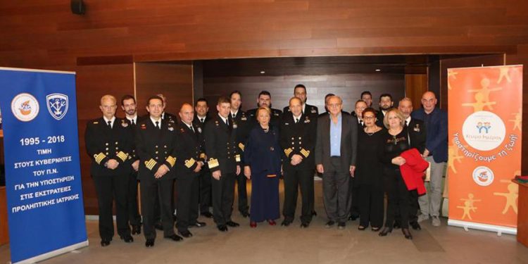 Τους κυβερνήτες πολεμικών πλοίων βράβευσε για την υποστήριξη στις εκστρατείες προληπτικής Ιατρικής «Ανοιχτή Αγκαλιά» η πρόεδρος Γιολάντα Βλάχου και το ΔΣ των Φίλων Κοινωνικής Παιδιατρικής «Ανοιχτή Αγκαλιά», κατά τη διάρκεια εκδήλωσης προς τιμήν του Πολεμικού Ναυτικού, που πραγματοποιήθηκε στο Κέντρο Πολιτισμού Ελληνικός Κόσμος.