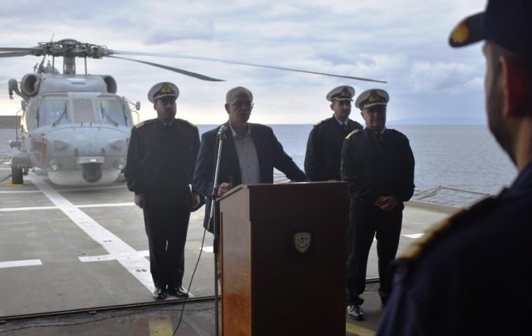 Απευθυνόμενος στο πλήρωμα της φρεγάτας εξέφρασε τον θαυμασμό και την ικανοποίησή του για τον επαγγελματισμό και την αφοσίωσή τους στο καθήκον, ενώ τους συνεχάρη, γιατί στη διάρκεια της κρίσης διατήρησαν σε υψηλότατο επίπεδο την επιχειρησιακή ετοιμότητα.