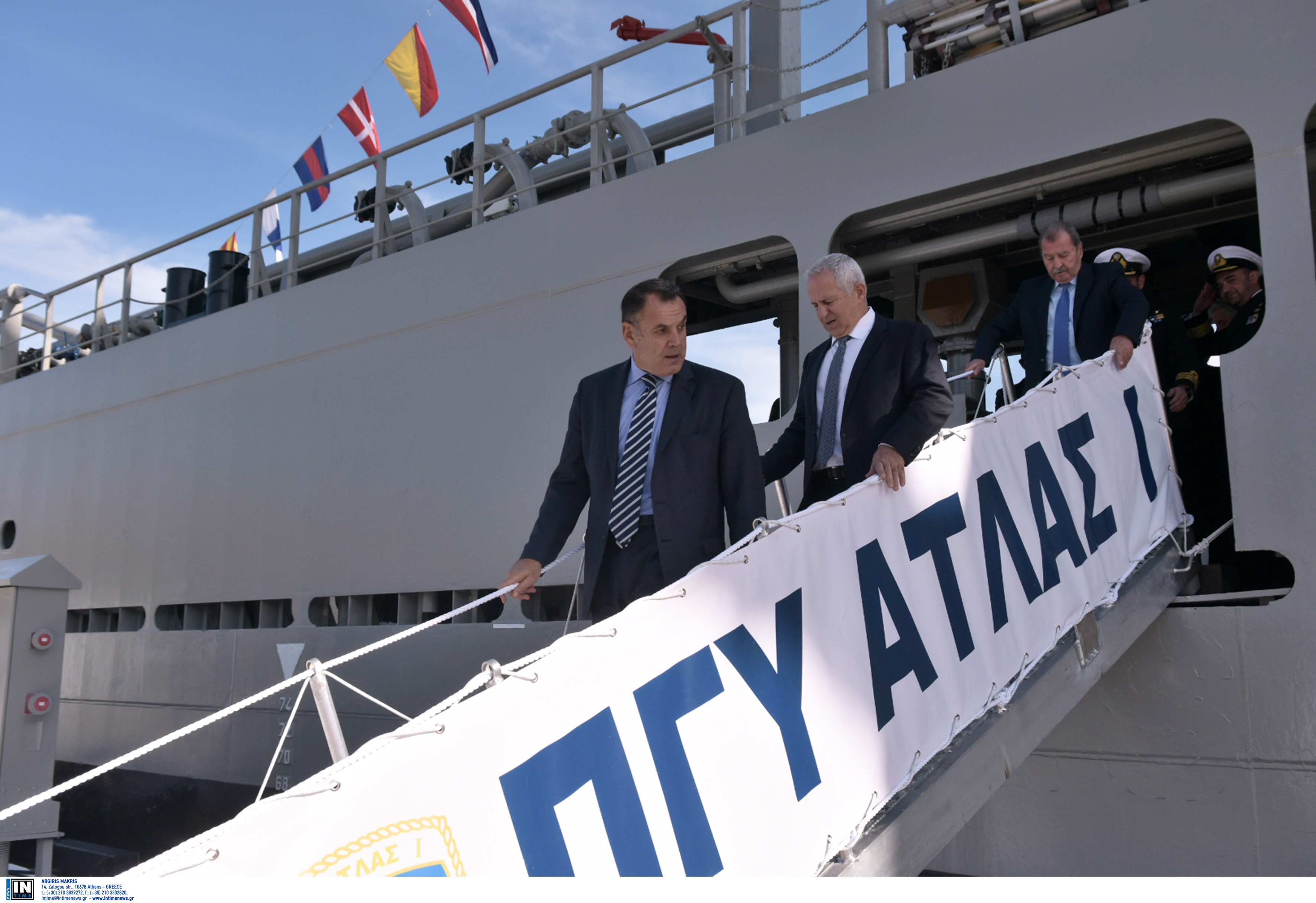 «Αισθάνομαι ιδιαίτερη τιμή και χαρά που μου δίνεται σήμερα η ευκαιρία να παρευρεθώ και να χαιρετίσω την ένταξη του πλοίου Γενικής Υποστήριξης «ΑΤΛΑΣ-1» στη δύναμή του Πολεμικού μας Ναυτικού. Η σημερινή ένταξη έχει ιδιαίτερη σημασία για το Πολεμικό Ναυτικό, καθ’ όσον μετά από πολύ καιρό εντάσσεται στο Στόλο μία μεγάλη κύρια μονάδα η οποία επαυξάνει ουσιαστικά τις επιχειρησιακές δυνατότητές του.