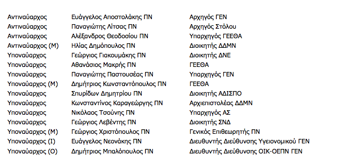 Η νέα σύνθεση του Ανώτατου Ναυτικού Συμβουλίου είναι η ακόλουθη:
