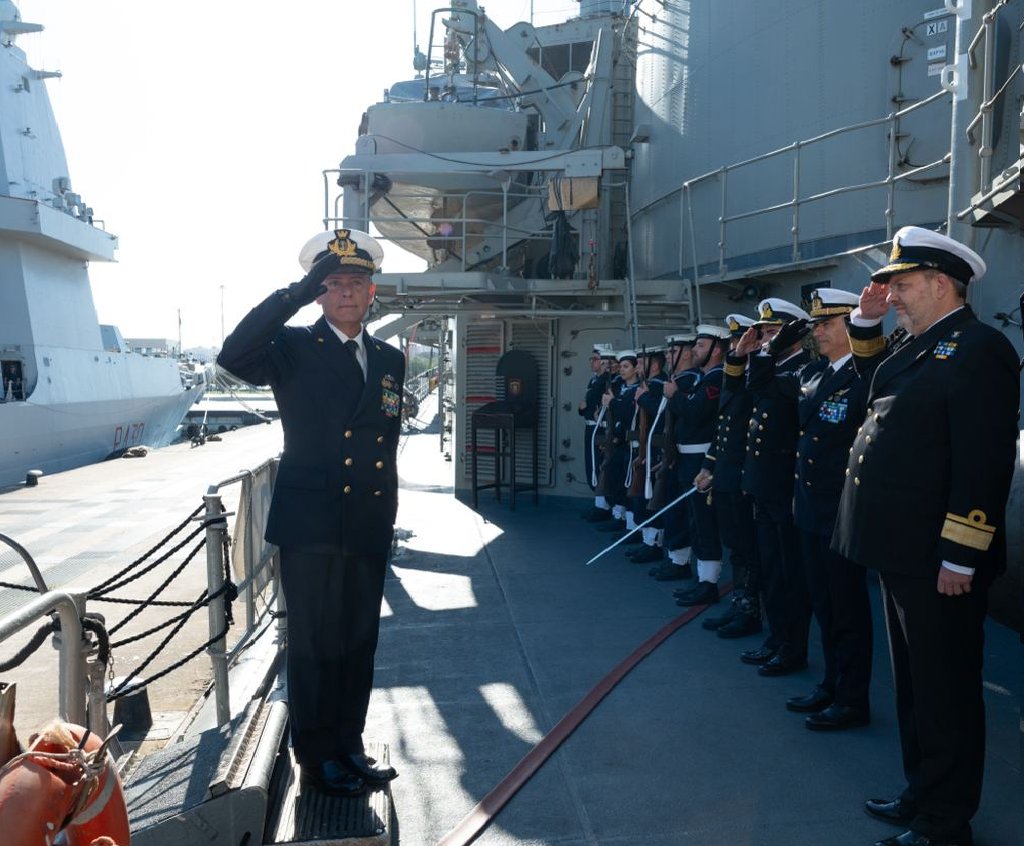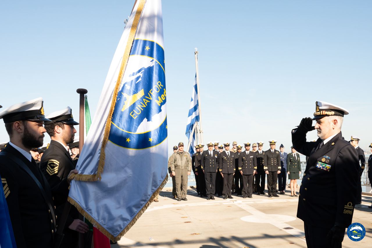 Πραγματοποιήθηκε, σήμερα Παρασκευή 05 Απριλίου 2024, επί της Φρεγάτας (Φ/Γ) ΕΛΛΗ, στη Ναυτική Βάση του Τάραντα της Ιταλίας, η τελετή παράδοσης των καθηκόντων Διοικητού εν Πλω (COM FHQ) της επιχείρησης EUNAVFOR IRINI από τον Υποναύαρχο Κωνσταντίνο Μπακαλάκο ΠΝ στον Ιταλό Υποναύαρχο Armando Simi, παρουσία του Ιταλού Διοικητή της επιχείρησης Υποναύαρχο Stefano Turchetto.