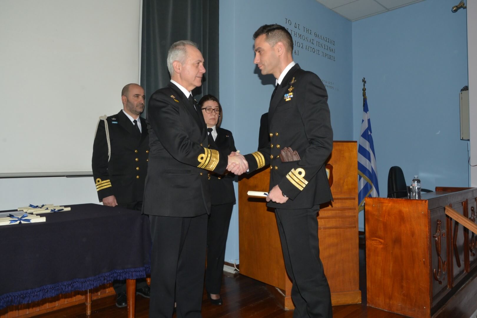 Τα πτυχία επέδωσε ο Αρχηγός Στόλου και διοικητής Ναυτικής Εκπαίδευσης αντιναύαρχος Πολυχρόνης Κουλούρης.