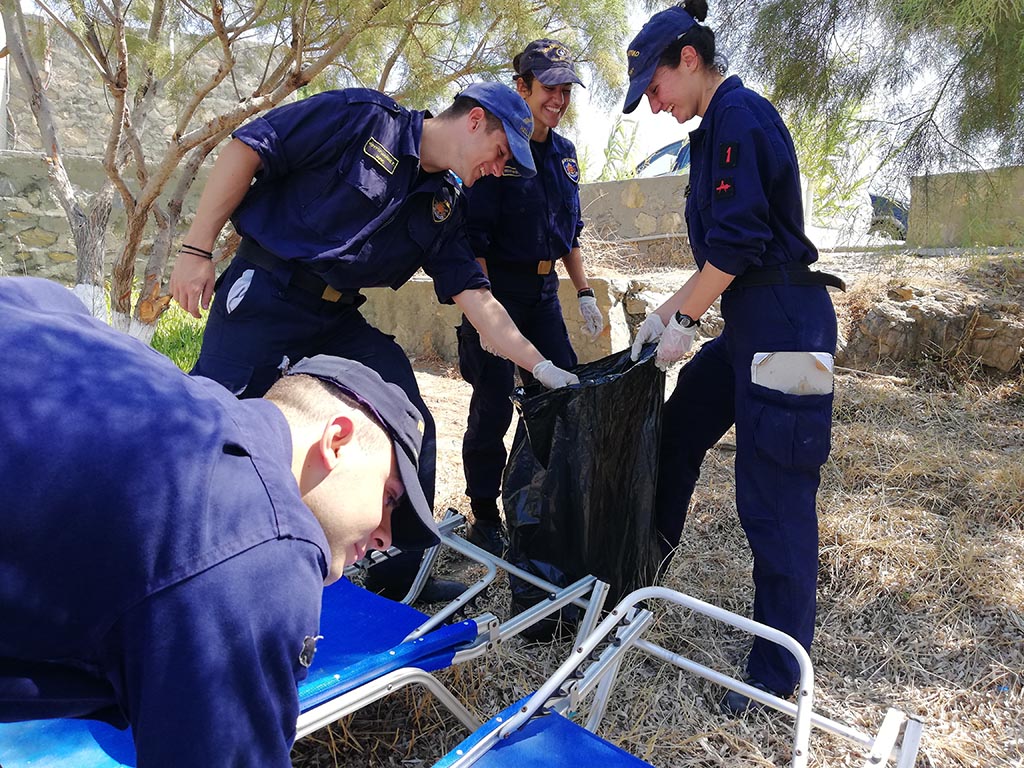 Στο πλαίσιο των δράσεων κοινωνικής προσφοράς του Πολεμικού Ναυτικού, Δόκιμοι Αξιωματικοί της Σχολής Μονίμων Υπαξιωματικών Ναυτικού που συμμετείχαν σε θερινό εκπαιδευτικό πλου πραγματοποίησαν καθαρισμό των ακτών των Ψαρών.